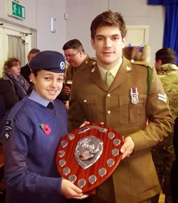 Every year a trophy is awarded to the youth organisation that raises the most money towards the Poppy Appeal. This year, after raising over £2,000 across three consecutive weekends, 422 (Corby) Squadron Royal Air Force Air Cadets were presented the L/Cpl James Ashworth VC trophy by Cpl Coran Ashworth. Collecting the trophy on the Squadron’s behalf was Cadet Hannah Eden.